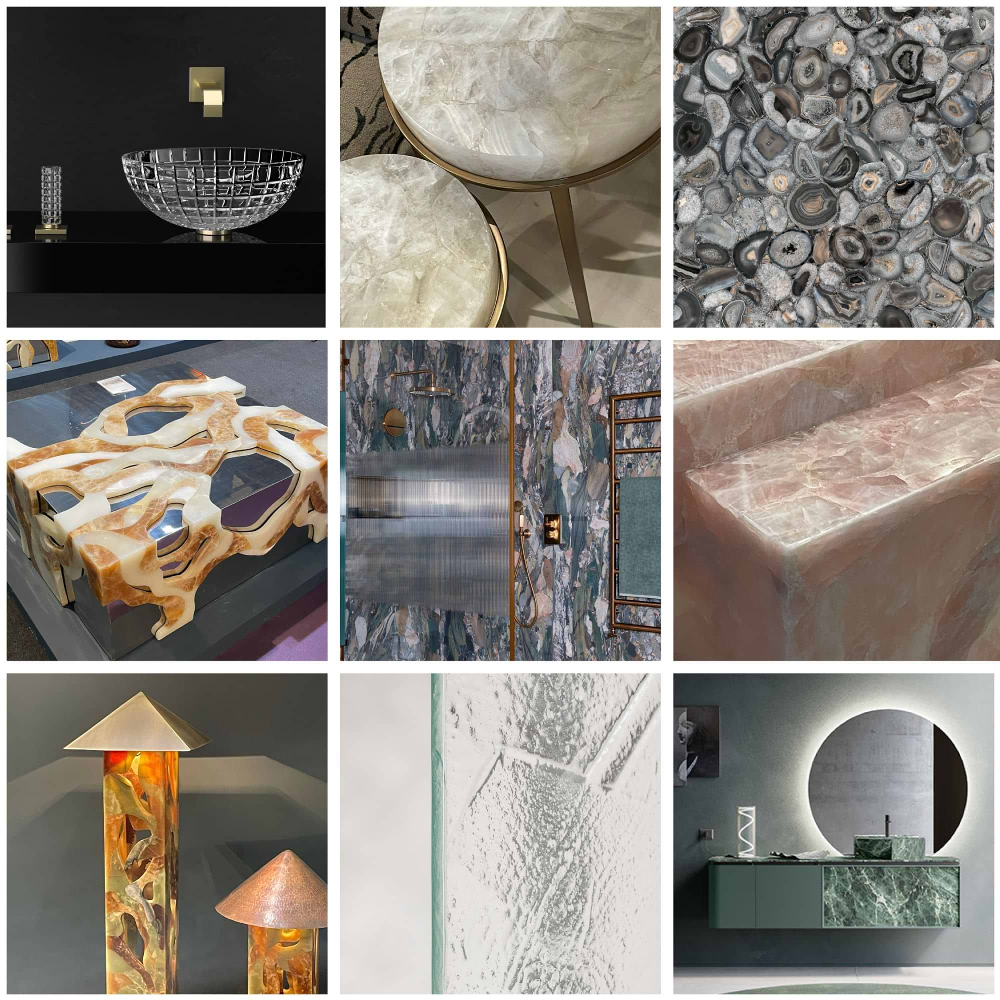 Designers are working gemstone references into furniture tops, lighting, decorative objects, and tiles, often through glass, glaze, and polished finishes that capture depth and luminosity. Tactile and hardwearing, even just a glimpse of gemstone introduces a characterising point of interest, offering a sense of quiet opulence over overt decoration.