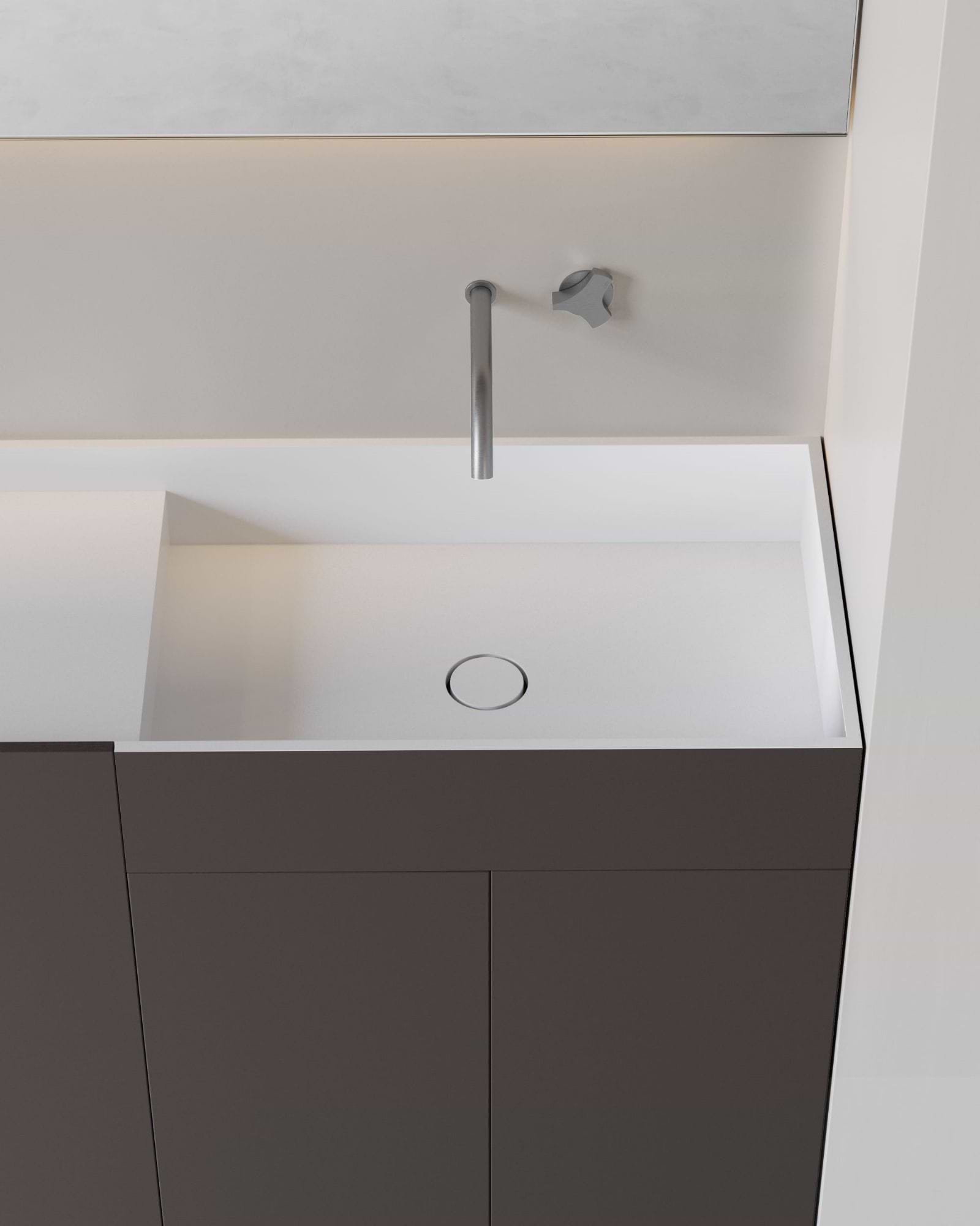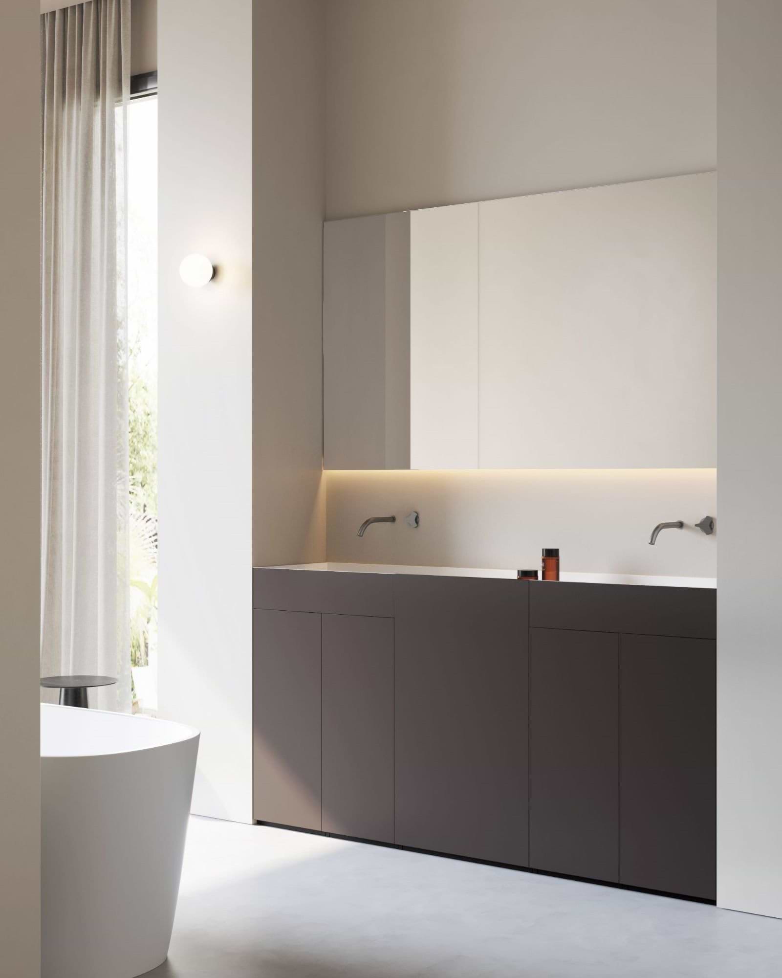 By Spanish manufacturer Buto comes Camira, a collection of bathroom furniture with linear and ultra-minimalist form. Camira offers both floor-standing and wall-mounted configurations, with Corian solid surface basins and mirrors, LED lighting, integrated sockets, and accessory trays.