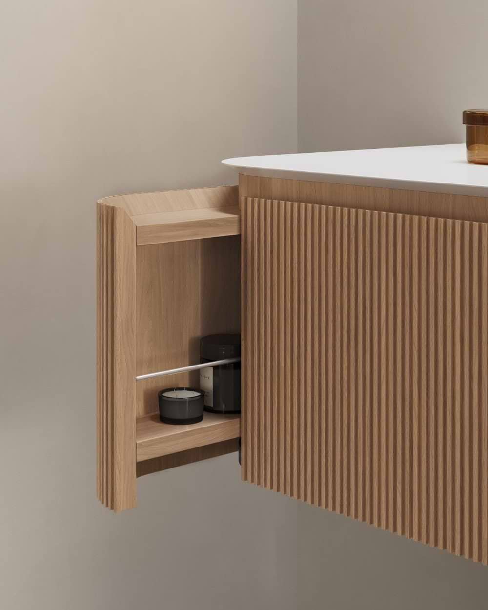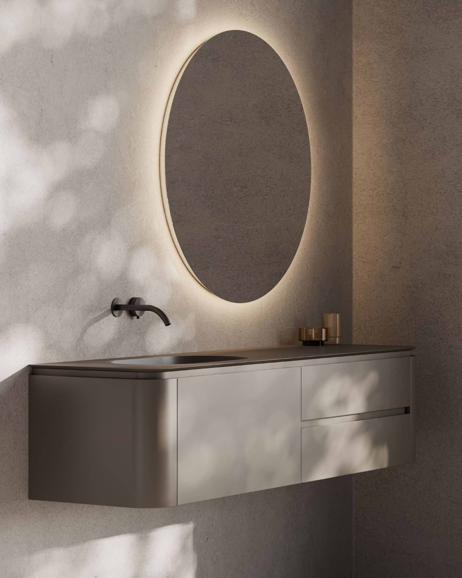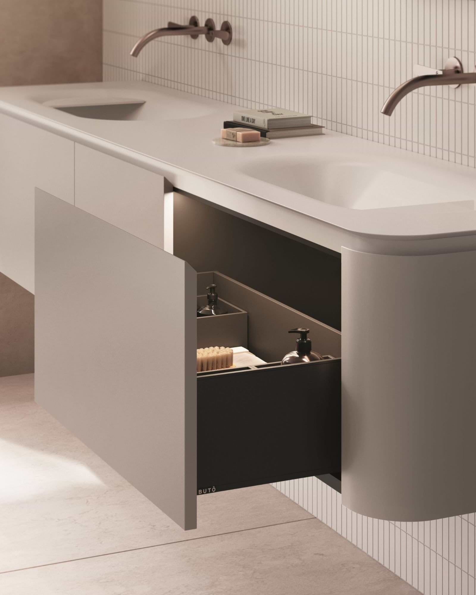 The Galiano bathroom furniture range by Spanish makers Buto is a first-to-market launch in the UK, characterised by its curved lines and handle-less drawers.