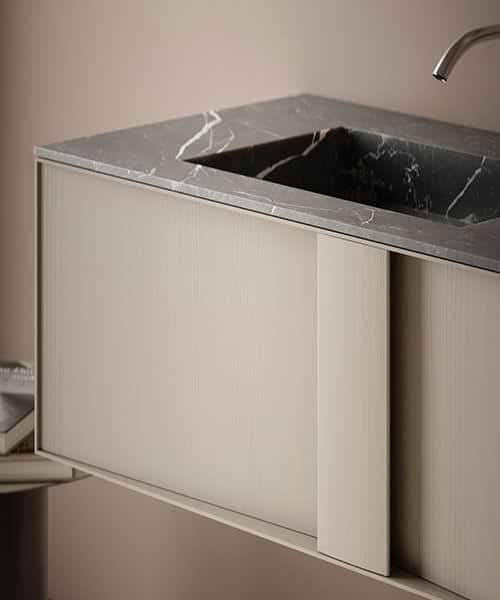 With over 40 finishes to choose from - 24 lacquer shades, 3 marbles, a selection of metals, and 12 wood options, including the sought-after fluted exterior - Ribon delivers exceptional scope for personalisation. Please enquire to learn more about the range or to connect with our bathroom experts to tailor Ribon to your space.