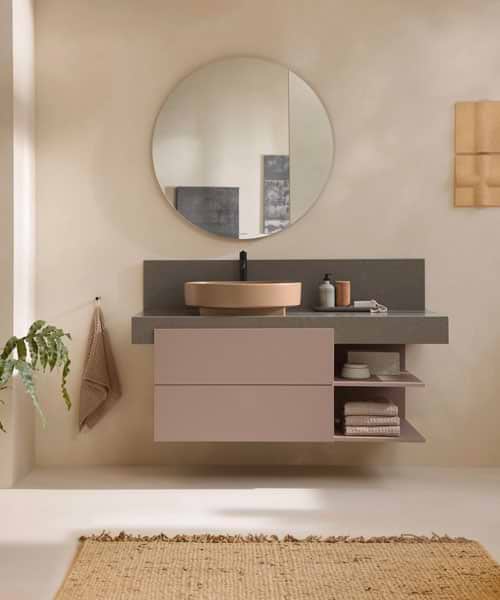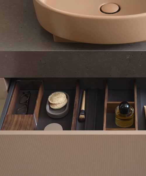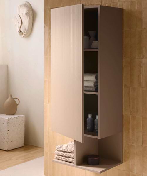 Responding to the rising quest for colour in bathrooms, Patricia Urquiola has created a new colour, Clay Terra Matt, for the ceramic pieces in the collection. “The earthy terracotta shade and the nature-inspired colour scheme of the bathroom furniture, with nuances of white, earthy shades of brown, and anthracite, herald a new openness to colour in the bathroom,” she comments.Please send an enquiry for further information or to speak with our bathroom experts on configuring Bold for your space.