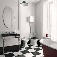 Empire is a traditional bathroom range given an unconventional Art Deco twist in the form of hexagonal design detailing. The collection includes taps, basin mixers, bath-shower mixer, concealed wall valves/bath spout, and a matching heated towel rail.
