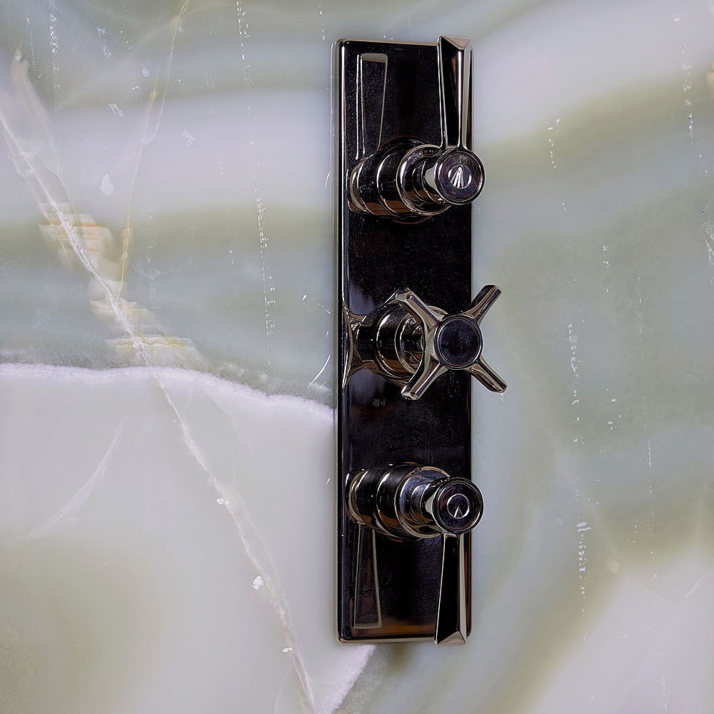 Manufactured exclusively in Britain for C.P. Hart, the Epoch Lever thermostatic shower valve has two outlets, can be fitted either portrait or landscape, and controls two of the Epoch bath or shower fittings. Please note, the required concealed body is sold separately.