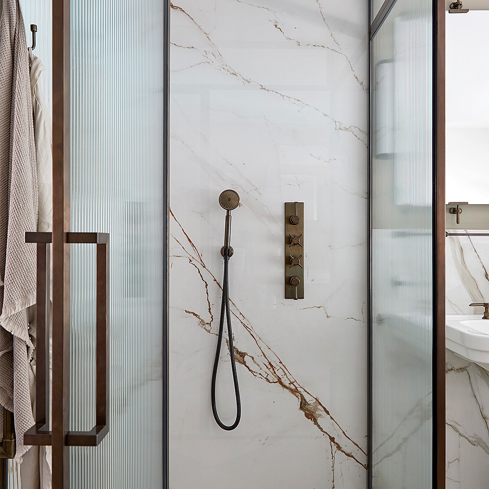 Manufactured exclusively in Britain for C.P. Hart, the Epoch Lever thermostatic shower valve has three outlets, can be fitted either portrait or landscape, and controls three of the Epoch bath or shower fittings. Please note, the required concealed body is sold separately.