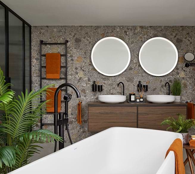 “The Norway collection pairs beautifully with bold colours. Though this collection suits a monochrome scheme, don’t be shy to combine bright basins or vanity units with the tiles, or even to contrast them with other natural textures, such as wooden accessories and plenty of plants.”