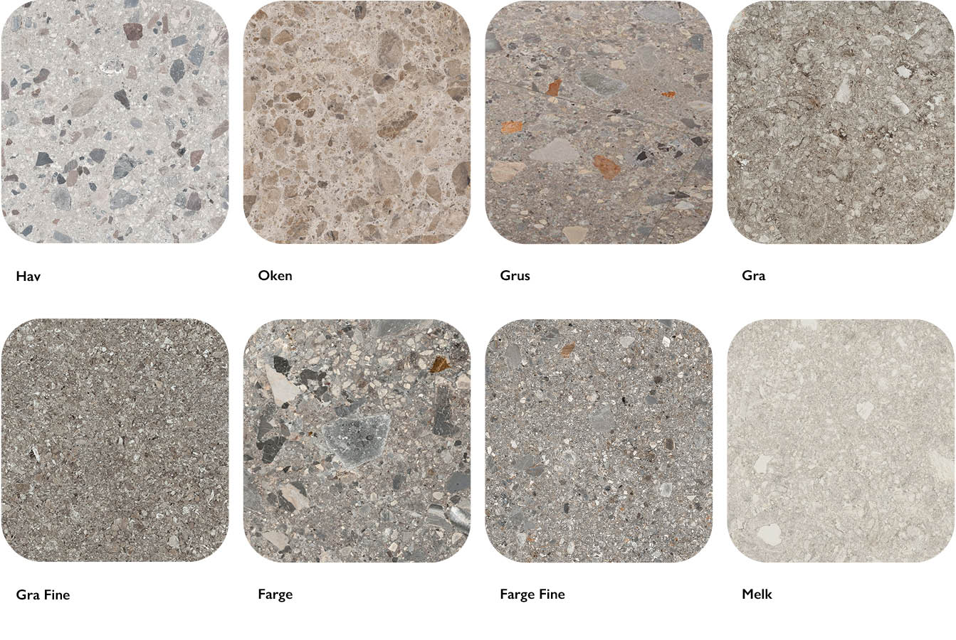 The Norway collection presents 13 playful designs in a muted colour palette, including Hav, a warm biscuity beige with brown and blue tones, and Grus, featuring graphite greys and flecks of oxidised iron.