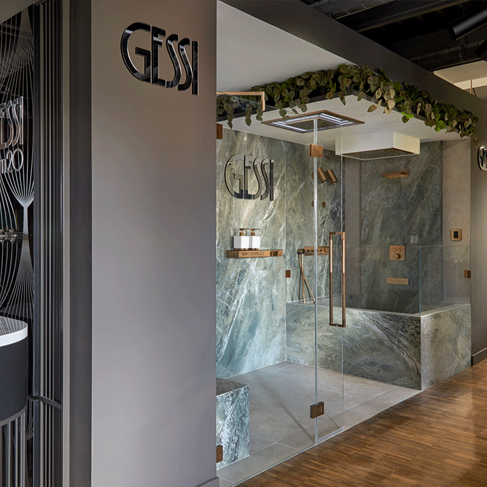 The upstairs area of the Guildford showroom has recently been renovated, now showcasing the best of Effe sauna and steam, Gessi, with working water displays, Keuco accessories and accessibility, as well as Dornbracht, with a design studio created to facilitate specifications.