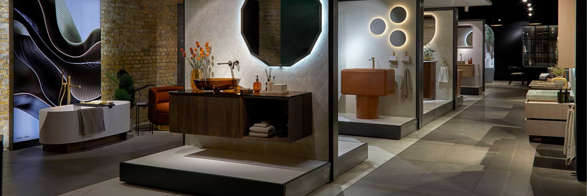 C.P. Hart Waterloo, located under the Victorian arches of the Southern railway, showcases our traditional, contemporary and cutting-edge bathroom collections. We work with new and innovative brands such as TOTO, Cielo, and Cocoon, as well as some of the longest-established German brands such as hansgrohe, Duravit, and Dornbracht, and Italian brands, including IdeaGroup furniture, Gessi, and Artelinea.