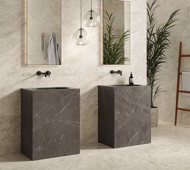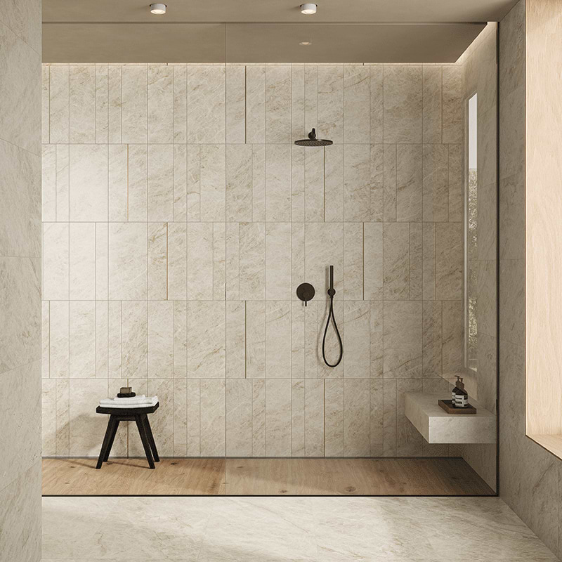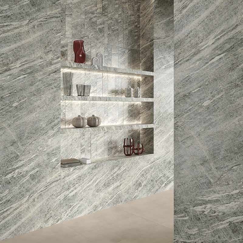 Available in a range of sizes, from intricate mosaics to extra-large slabs, DIVA provides numerous options for both floor and wall applications, allowing for inventive and highly technical installations.