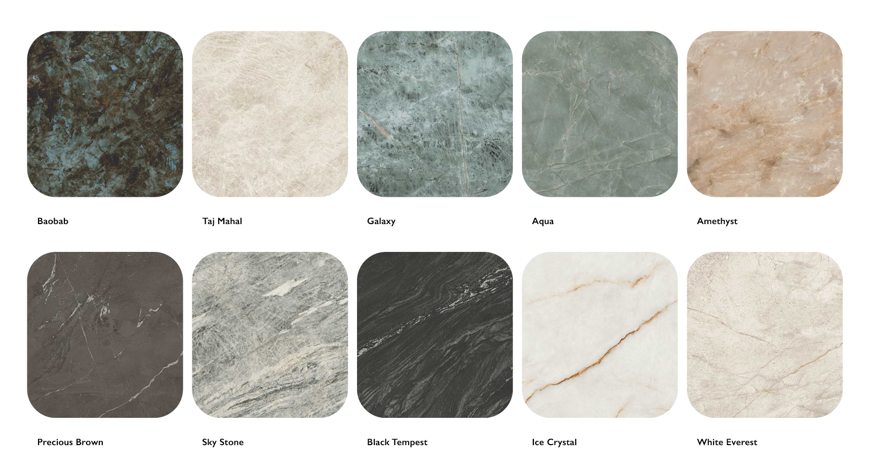 Each DIVA colourway has been purposefully designed and produced with finishes that enhance the realism of their appearance. Those concepts that have more crystalline patterns are highly polished, whilst those inspired by softer, satin stones have silk, velvet, or matt finishes.